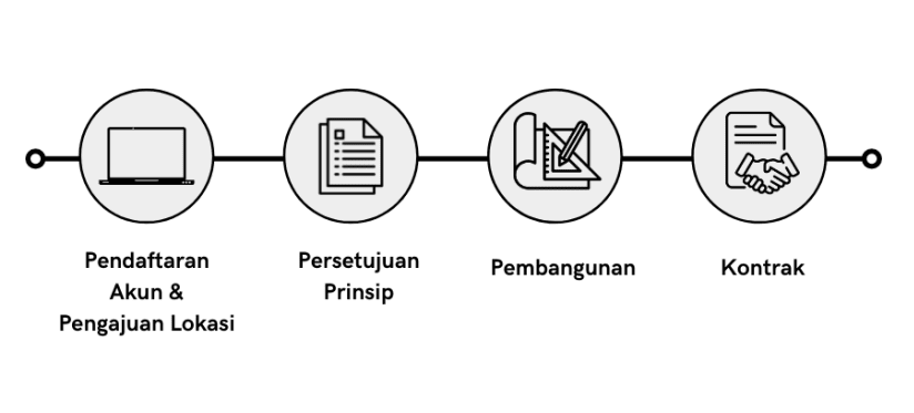 Proses ini terdiri dari beberapa tahapan, antara lain:- Verifikasi lapangan : bertujuan untuk mengecek kelayakan secara keekonomian dan hal lainnya atas lokasi yang diusulkan pendaftar.